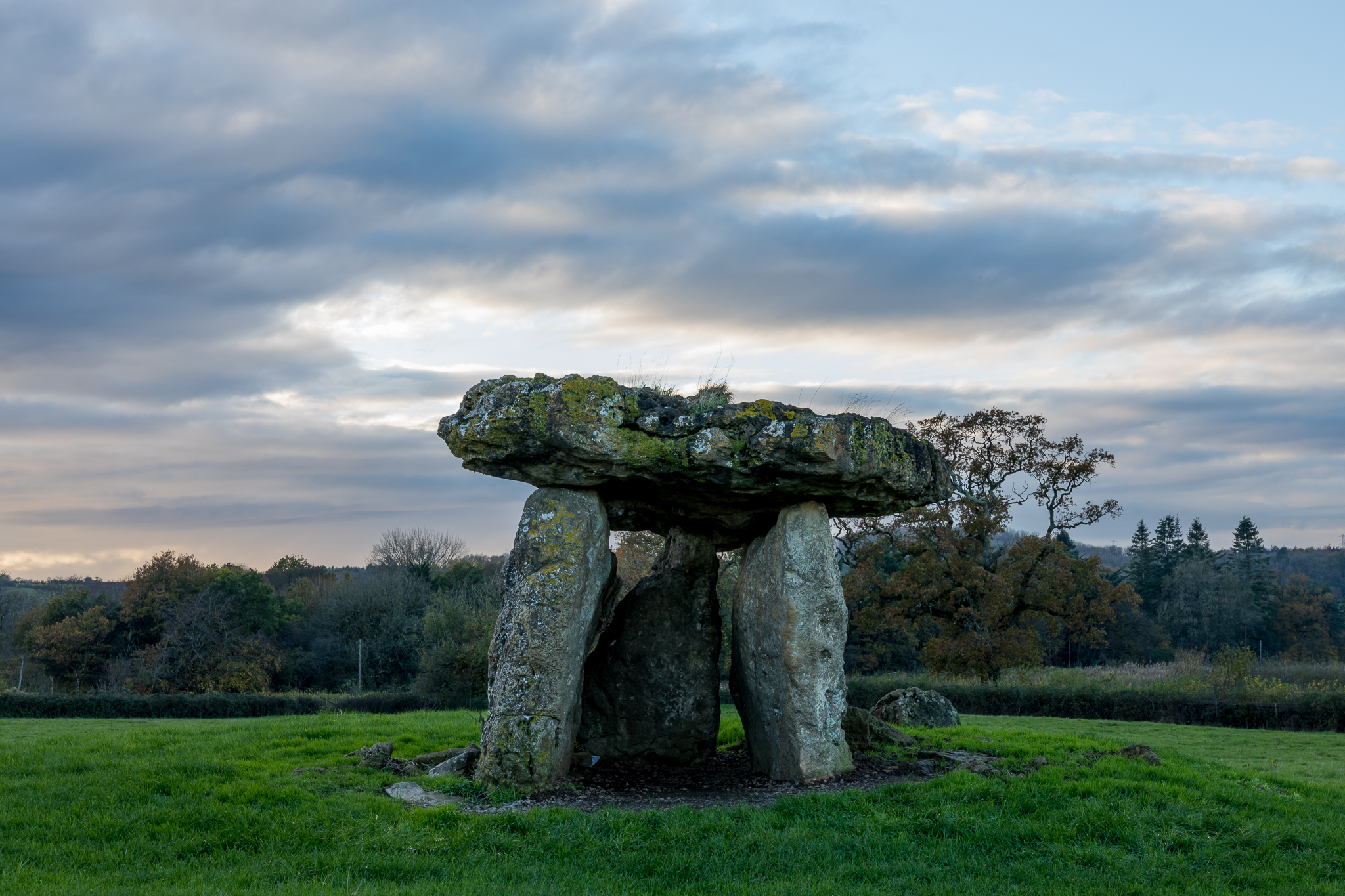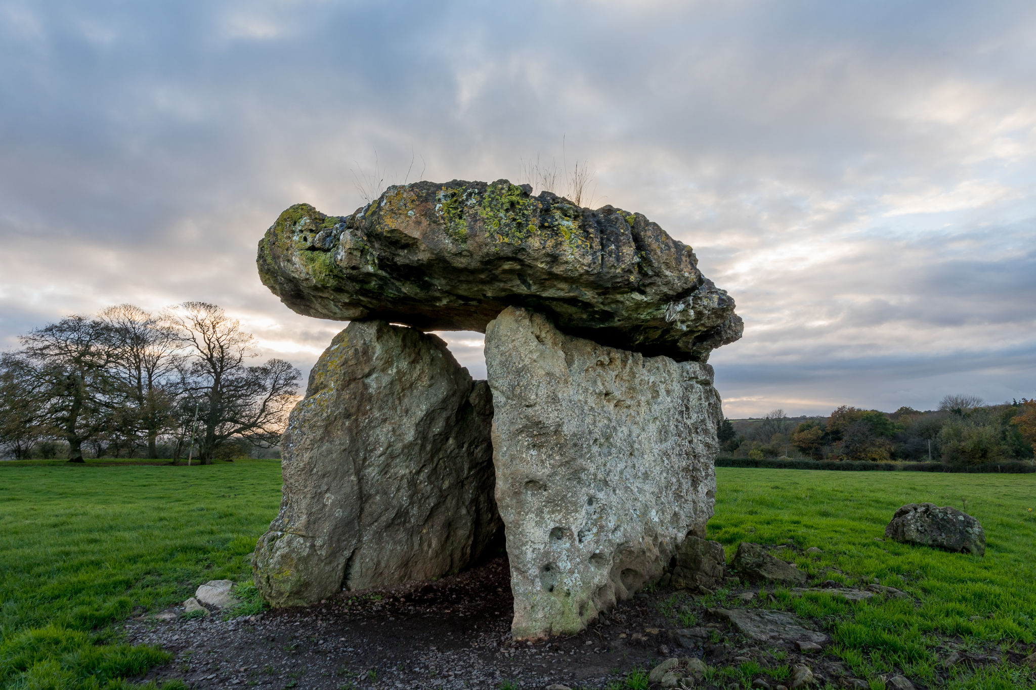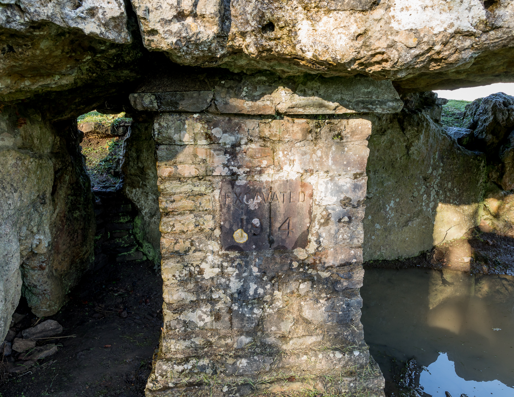There is no car park by this site and it is located by the side of a main road, through a gate. The Chamber can be seen from the gate and is at the very top of a hill. Nothing else is around the site; it is on its own and bigger than Harold’s Stones and Tinkin’s Wood.