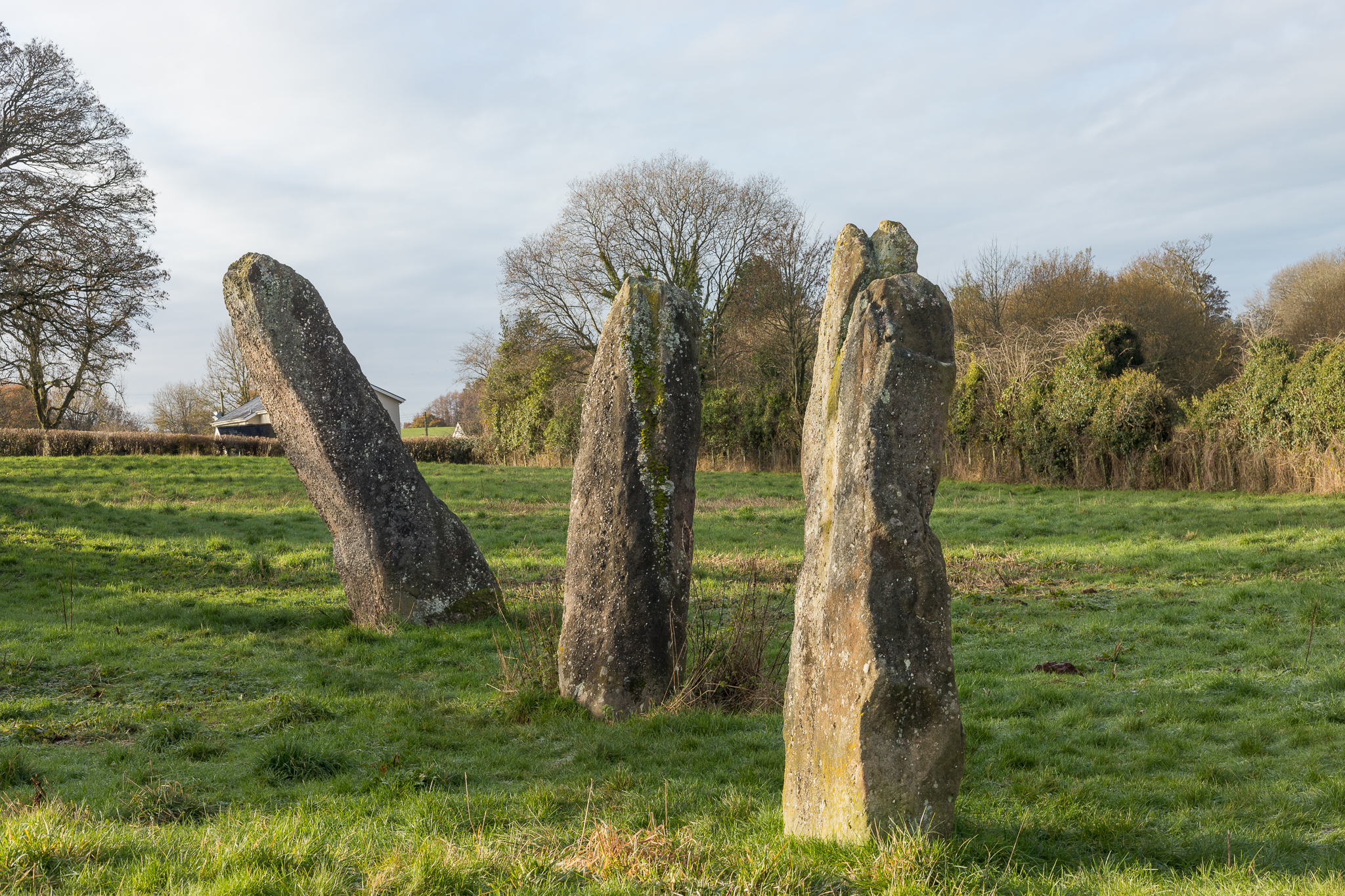 I visited this site early this morning, it was extremely cold and the sun was quite nice so I just wanted to capture the sunlight on them. Unlike the burial chamber I have visited, this site contains three standing stones on a field close to the main road. One stone looks like it is falling down. Comparing them to Stonehenge, these standing stones are like the Held Stone. The landscape there was not just flat, it was hilly, there were dips in the earth and it was unusual. The shadows in comparison to Tinkinswood were minimal so I took images at different angles.