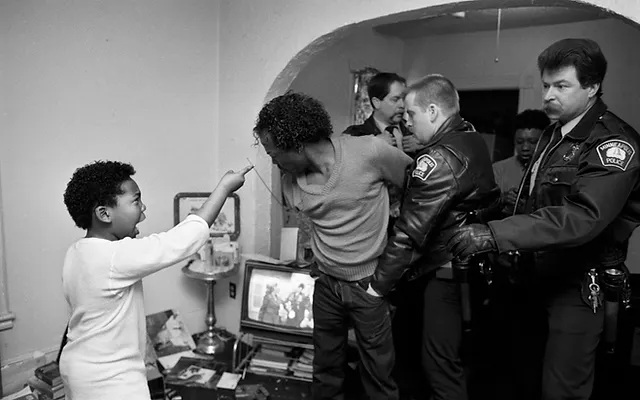 This can be clearly seen in the image above, again witnessed by Ferrato. You can only imagine being a mother herself where her motherly instincts may have taken over in this situation to want to protect the little boy. The police seem to be allowing the little boy to vent his anger and frustration to his father after the attack on his mother. There is a genuine understanding and empathy from not just the police but that of Ferrato for standing back and allowing the boy to be heard vocally.